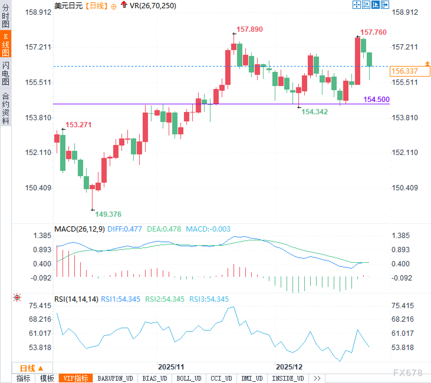 技术面上,154.50附近存在明显支撑,而若汇价能重返158一线,则可能再次试探160关口。不过眼下正值假期周,市场流动性偏薄,价格容易受小单影响剧烈震荡,出现上下影线频繁的“拉锯市”。