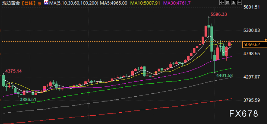 汇通财经APP讯——周二(北京时间2月10日)亚市早盘,现货黄金交投于5020美元/盎司附近,金价周一显著上涨,主要
